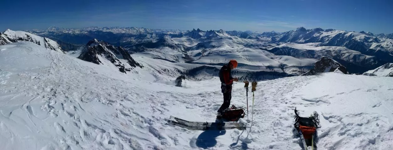 Journée complète avec retour en peau de phoque Au départ de l'Alpe d'Huez, au sommet du pic Blanc. Près de 2000m de dénivelé de descente!! Itinéraire accessible pour de bons skieurs.