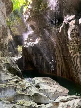 Du début à la fin, les Gorges de Chailles dévoilent un paysage unique : arches naturelles, parois calcaires, eau limpide et vasques profondes. Une section de nage en eau vive de 400 m sans appui vous plonge dans l’atmosphère sauvage du lieu, suivie de 20 minutes alternant marche, nage et désescalade. La marche retour, ascendante, dure environ 30 minutes.