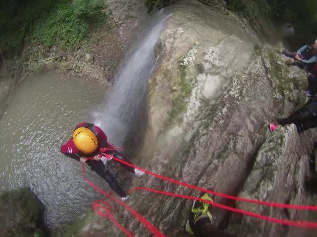 Slechts één waterval van 10 meter moet met behulp van het touw worden overgestoken.